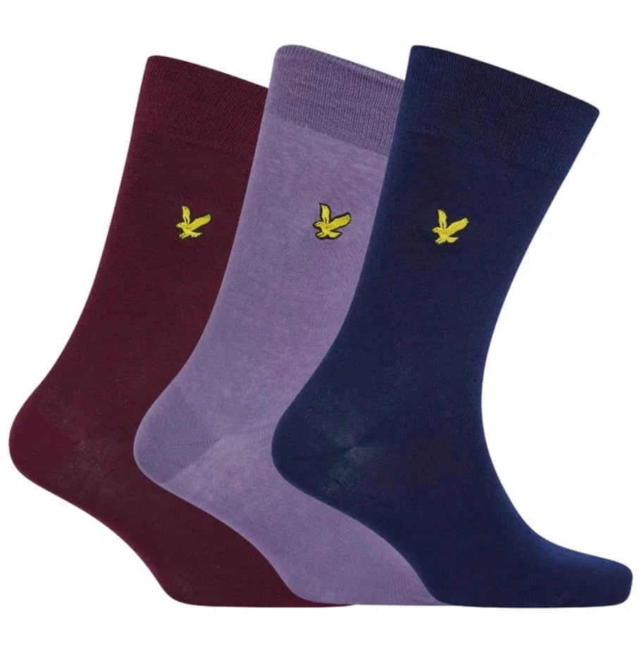 Lyle & Scott Angus 3 Pack Socks Navy,Burgundy,Purple 7-11UK