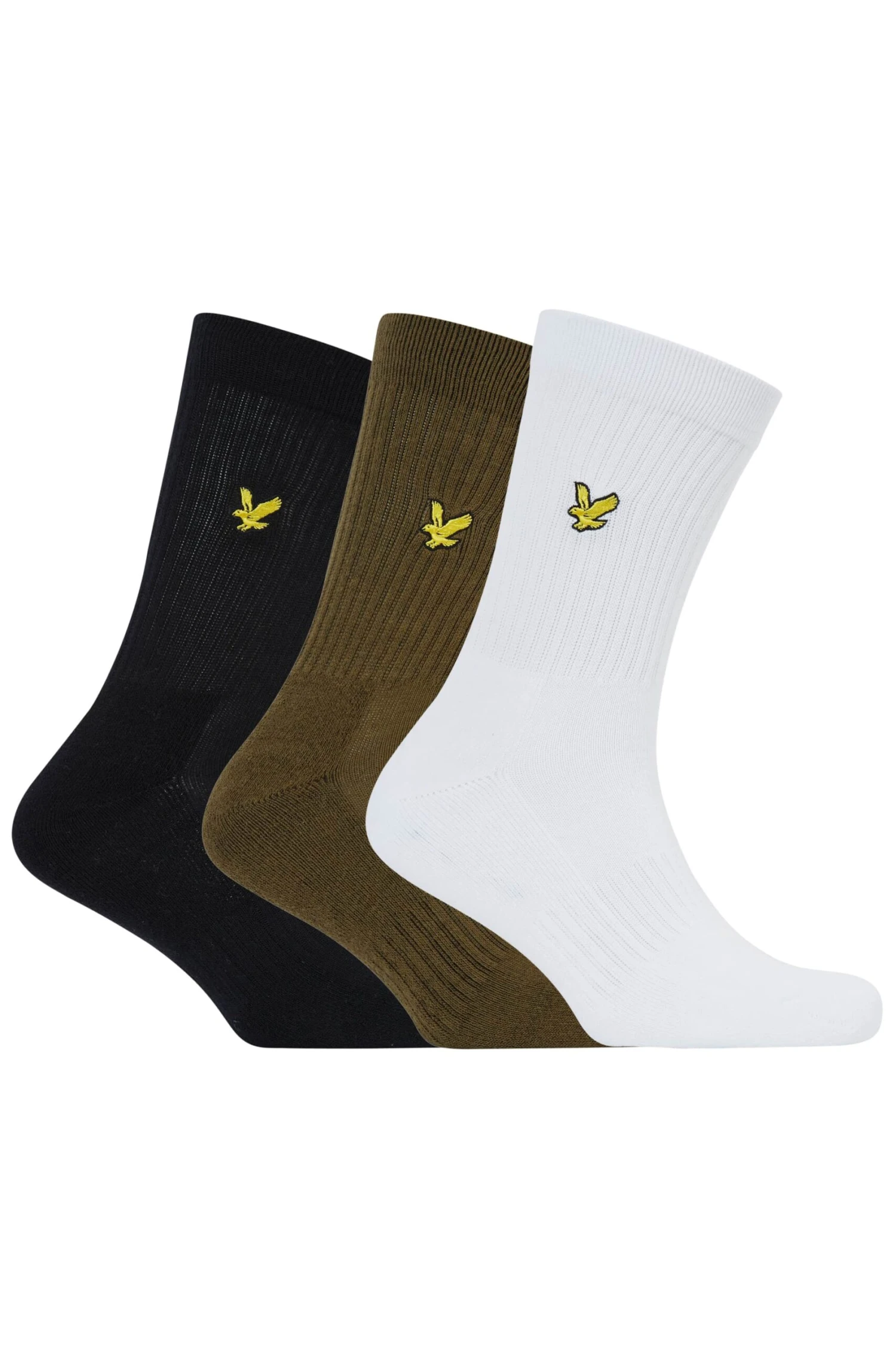 Lyle & Scott Hamilton 3 Pack Socks Dark Olive / White / Black