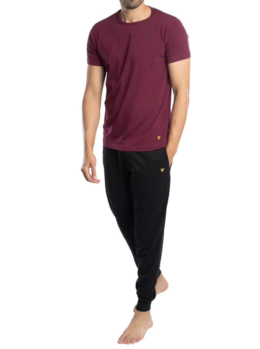 Experience luxury at home with the Lyle & Scott Cash Pyjama Set in Wine Tasting/Black. This stylish set includes a top with an embroidered logo and a straight hem, complemented by bottoms that feature an embroidered logo and an elasticated branded waistband.
