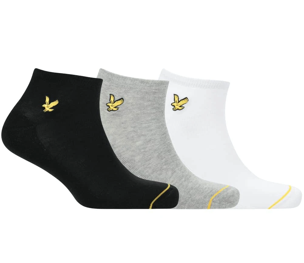 Lyle & Scott Ross 3 Pack Trainer Socks – White, Black, Multi 7-11 UK