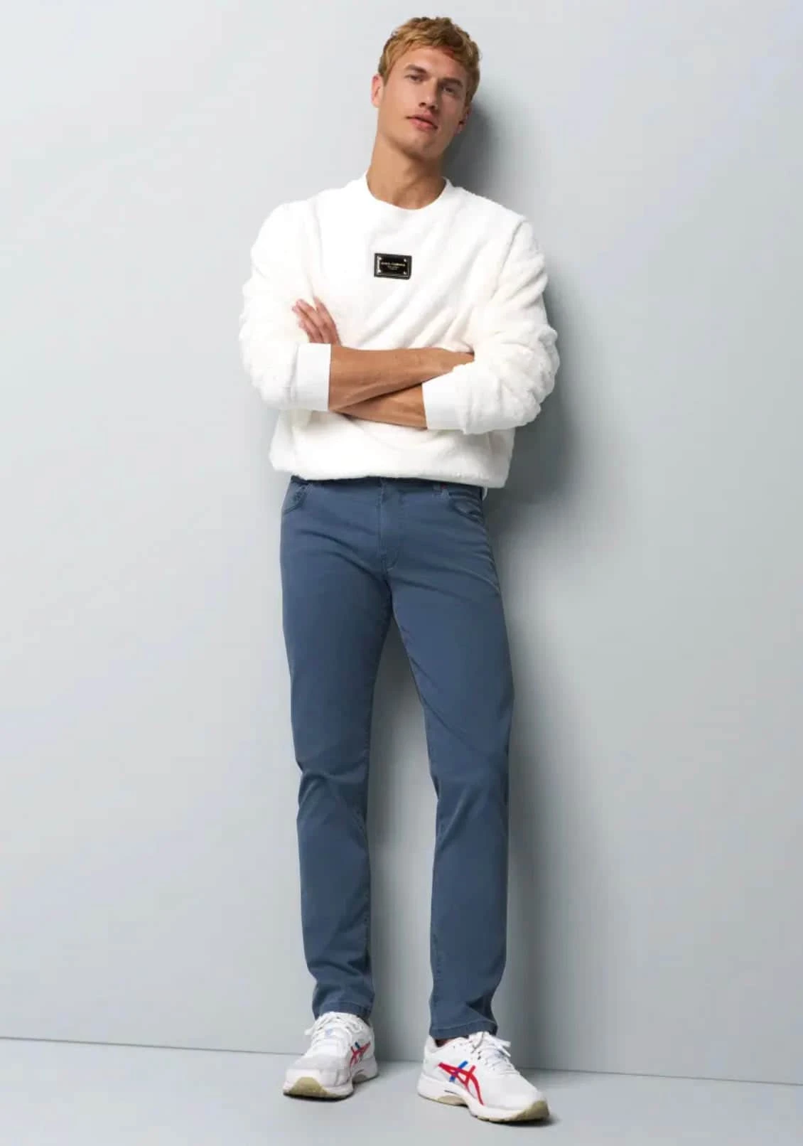 Our sporty five-pocket trousers are available in a range of beautiful colors and are crafted from premium twill made entirely from pure organic cotton. The super-stretch material provides maximum freedom of movement, while the durable, hard-wearing fabric ensures long-lasting wear. With a slim fit, these trousers offer a modern aesthetic, making them a versatile choice for various occasions. They combine quality, functionality, and stylish design.