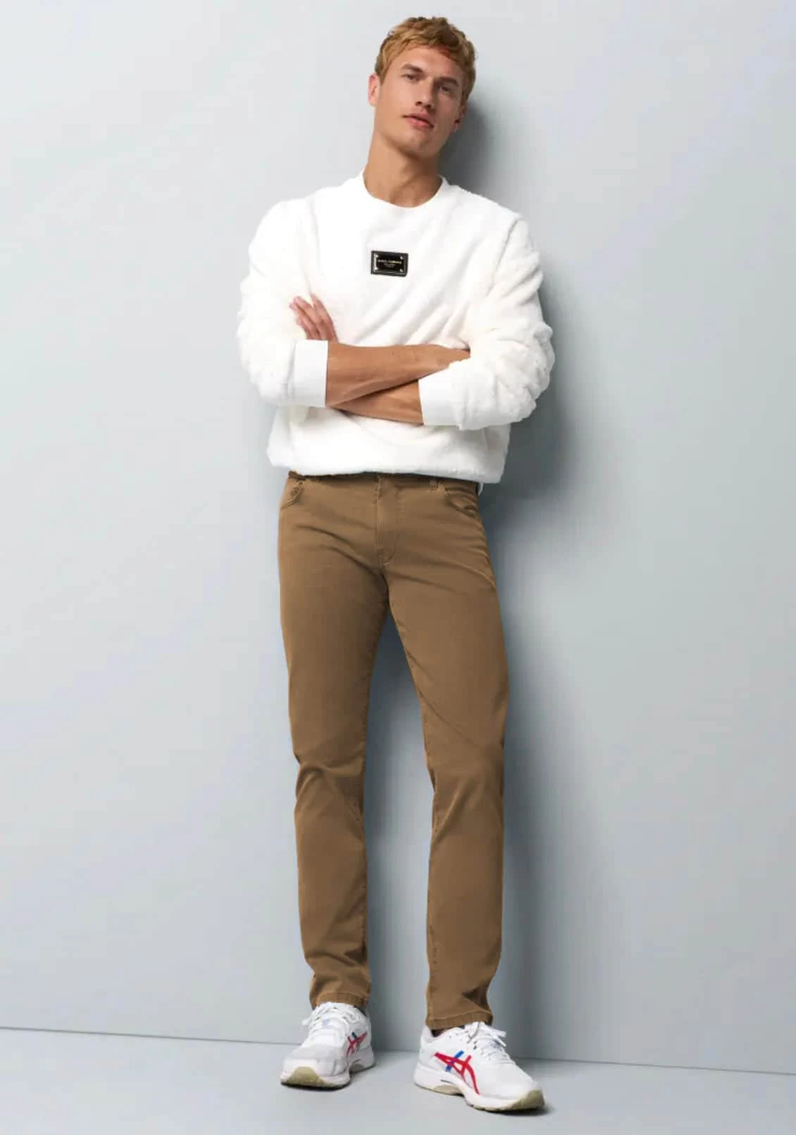 Our sporty five-pocket trousers are available in a range of beautiful colors and are crafted from premium twill made entirely from pure organic cotton. The super-stretch material provides maximum freedom of movement, while the durable, hard-wearing fabric ensures long-lasting wear. With a slim fit, these trousers offer a modern aesthetic, making them a versatile choice for various occasions. They combine quality, functionality, and stylish design.