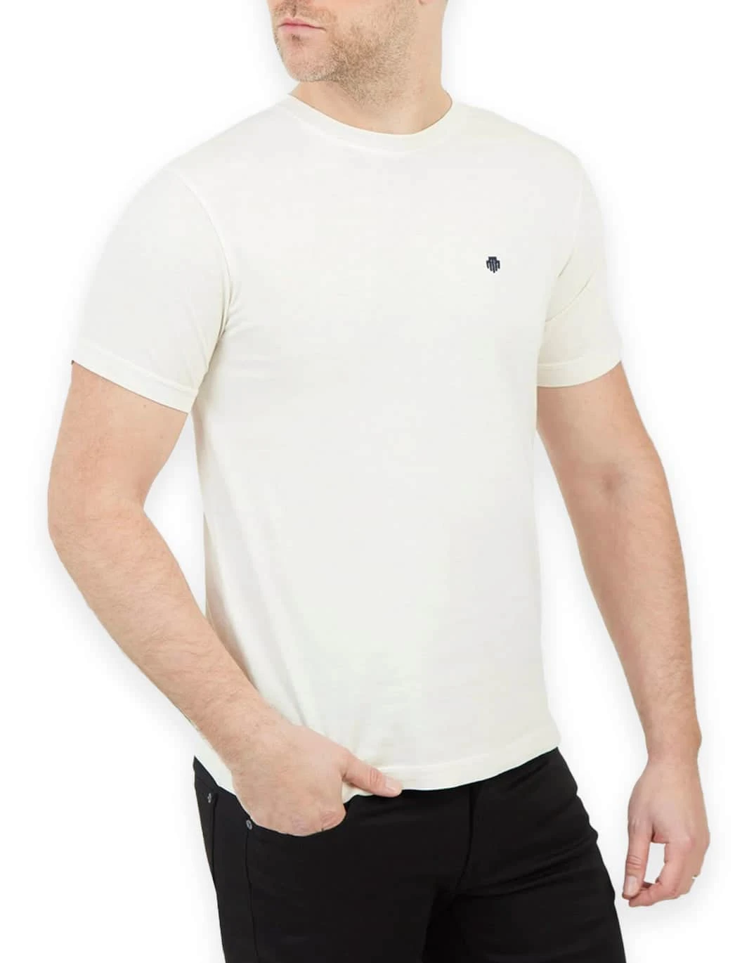 The short-sleeve crew neck t-shirt features 180gsm single jersey, complemented by contrast chest embroidery, tonal stitching, and a branded flag label.