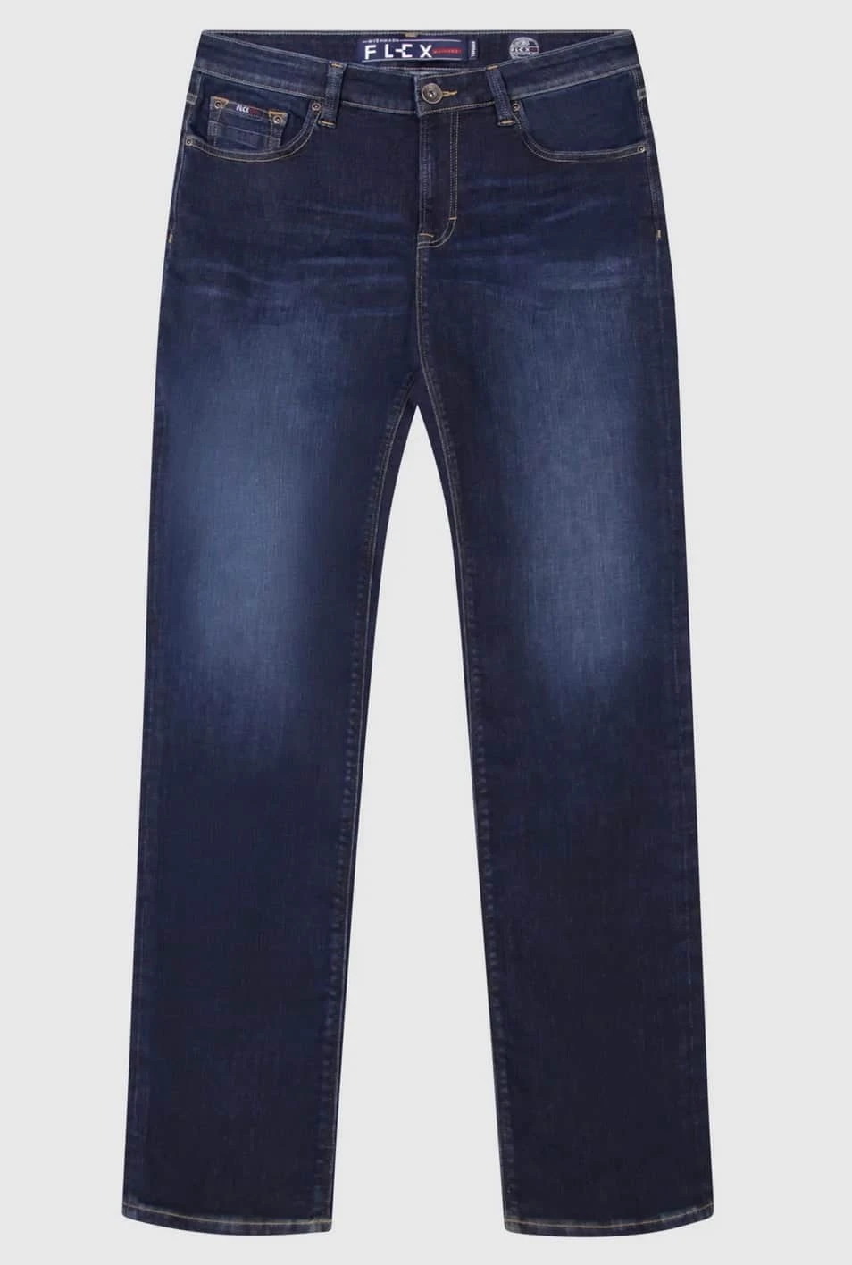 This pair of jeans features a dark-blue wash, accentuated with distinctive abrasions and wear marks for a striking contrast. The hand-finished wash process introduces faded-blue nuances, lending the denim a captivating interplay of highs and lows within the indigo spectrum, enhanced by subtle 3D creases. The stitching is thoughtfully matched to complement the denim’s shade.