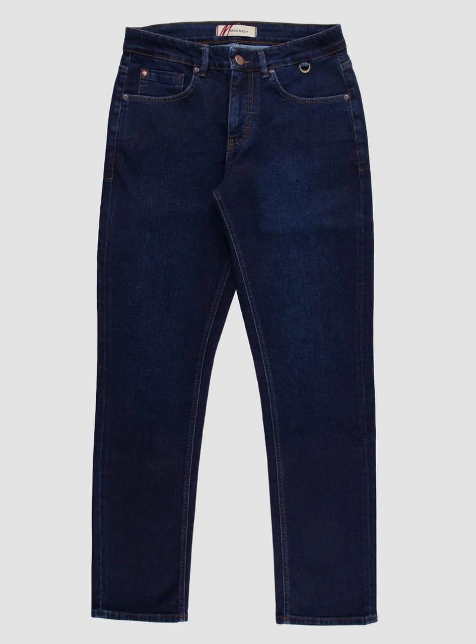 Crafted from ecru warp and deep indigo blue weft, our denim provides mid-stretch for unparalleled comfort. The deep indigo base is enhanced by light hand sanding for a stylish touch. The back pockets feature contrast stitch detailing, and the front belt loop is adorned with a metal D-ring. For added convenience, there’s an inside center back loop for easy hanging.