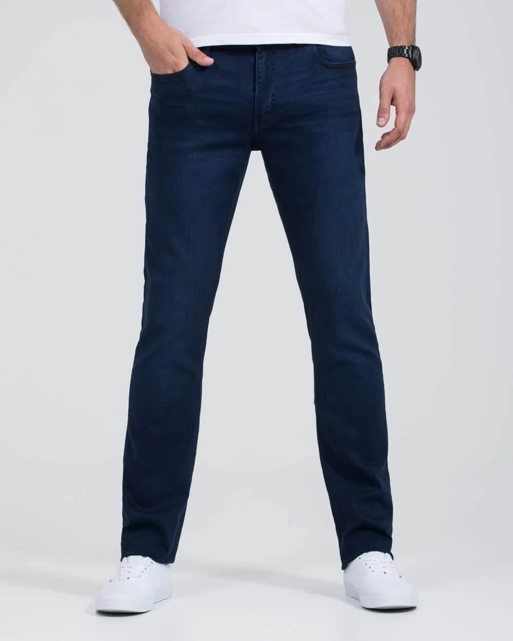 Our straight fit embodies simplicity and regularity. Featuring a standard rise, this fit boasts a slim, straight leg design that provides additional room for enhanced comfort. Positioned just below the waist, the hem measures approximately 15 inches.