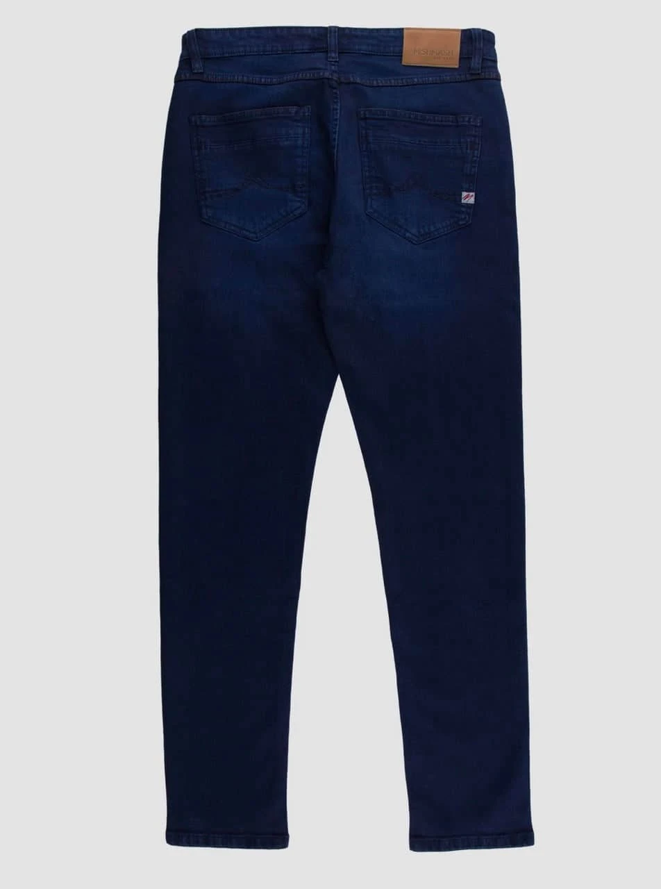 Crafted from blue warp and deep indigo blue weft, our denim offers mid-stretch for optimal comfort. The rich blue base is complemented by a well-defined hand finish, adorned with subtle 3D whiskers. Additional features include a secondary jetted pocket above the right-hand side back pocket, along with intricate stitch details on the front pockets. The design is further elevated by double center back belt loops and an inside center back loop for easy hanging.