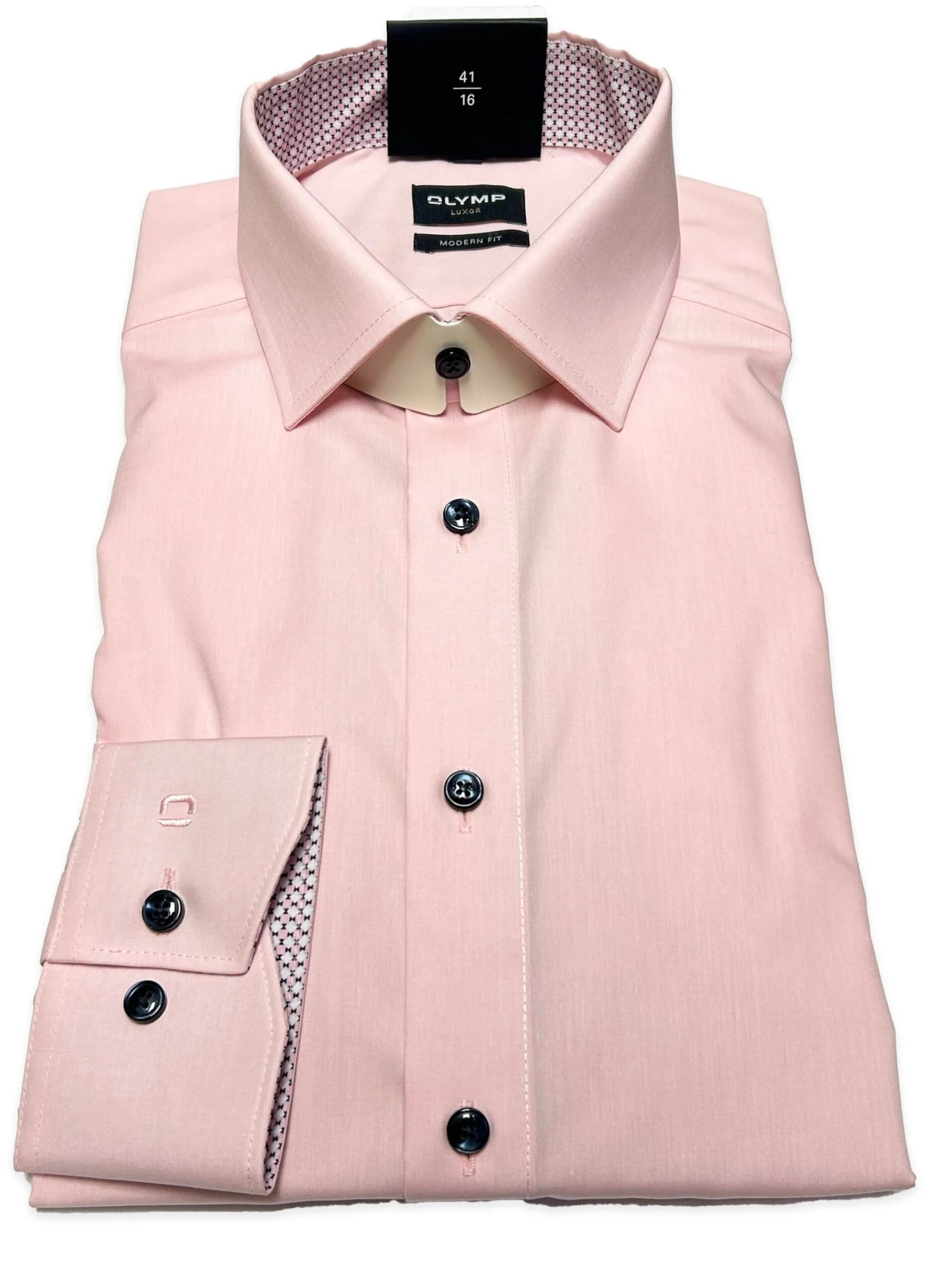 The fashionable OLYMP Luxor modern fit GREEN CHOICE shirt impresses with its high-quality cotton and luxurious wearing comfort. The integrated trimmings in the collar and the cuffs skilfully upgrade the shirt together with the light structure.