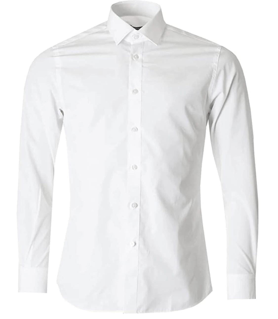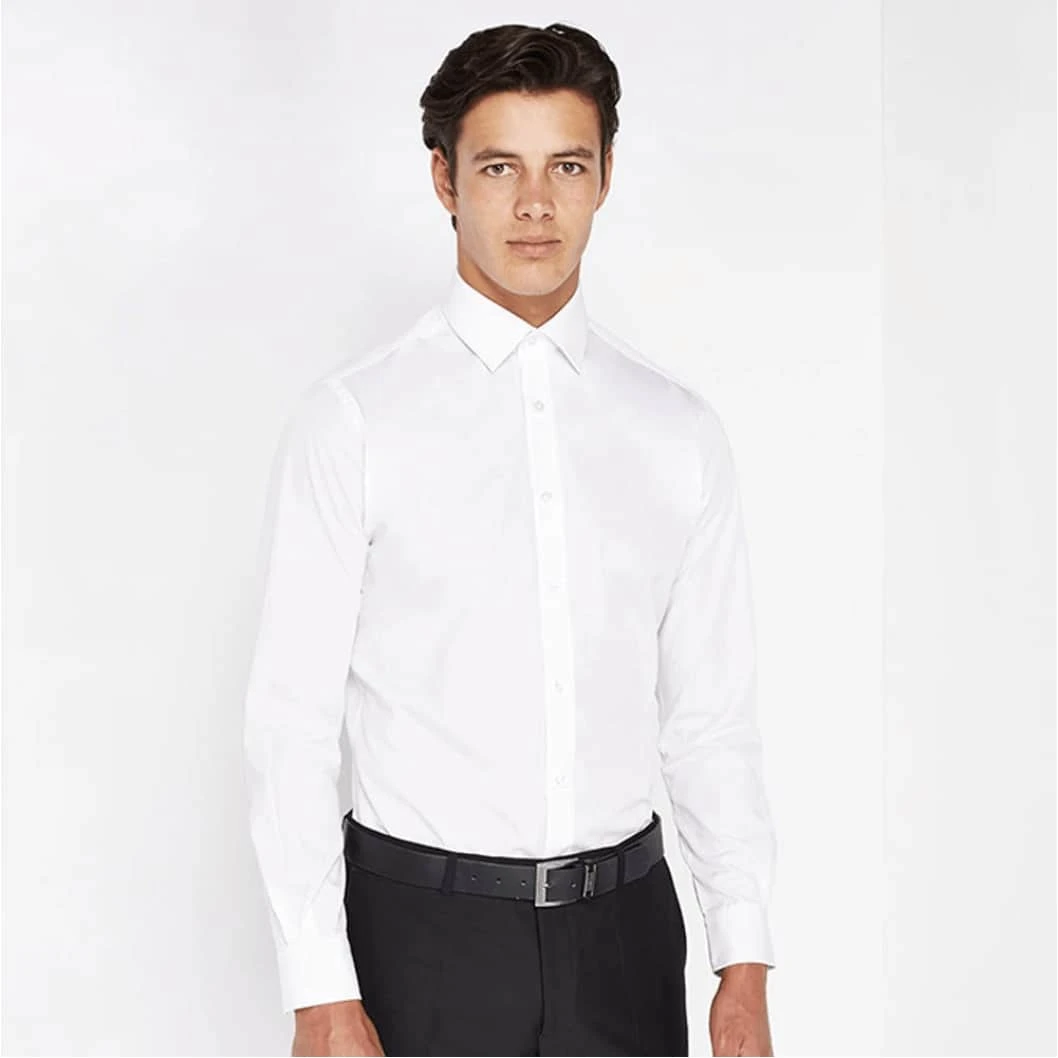 White tapered fit plain cotton-blend shirt and classic pointed collar.