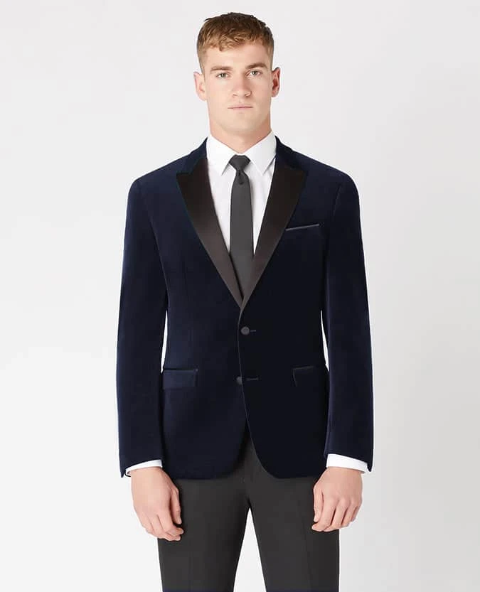 Remus Uomo Men’s Monti Slim Fit Velvet Tuxedo Jacket Navy