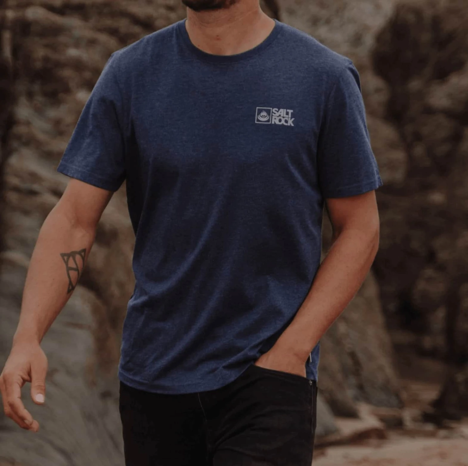 Introducing the men’s blue Corp 20 t-shirt, now available at Kelvin Graham Menswear. This simple yet versatile t-shirt is designed to meet all your needs, whether you’re embarking on exciting outdoor adventures, enjoying a beach day, exploring the city, or simply relaxing on the sofa.