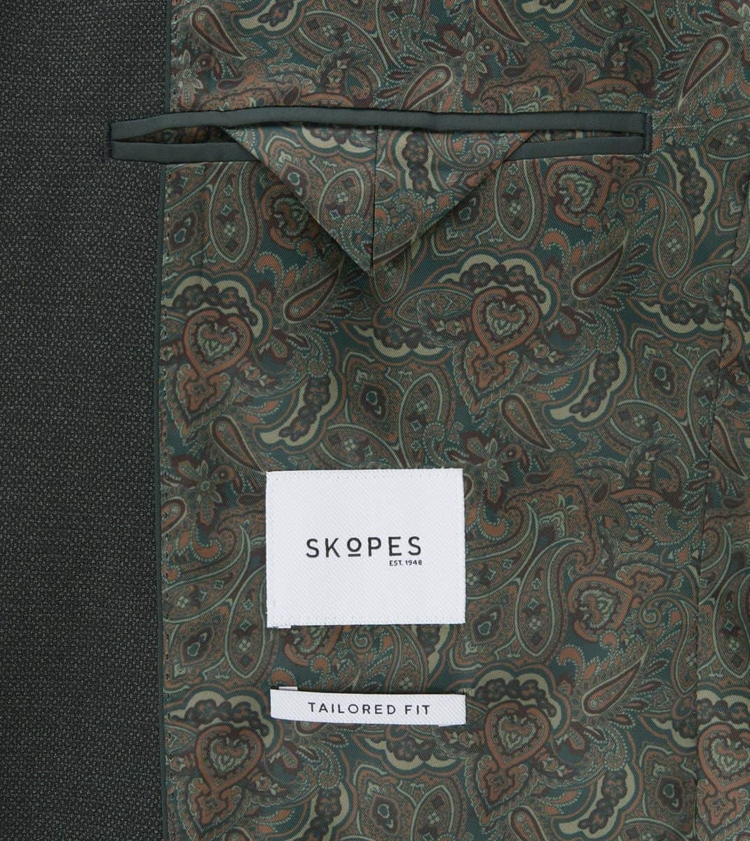 Experience the tailored Harcourt suit jacket crafted in a tweed-effect green fabric. Notable features include straight flap pockets, a combination of tonal plain and patterned lining, and twin side vents for added flair.