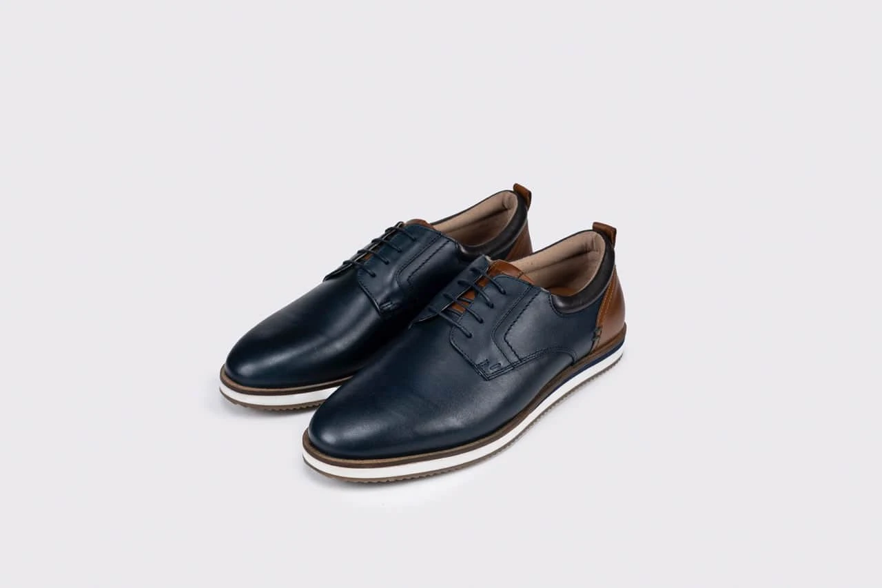 Sloane Shoes Mens Brandon Casual Trainers Navy/Cognac