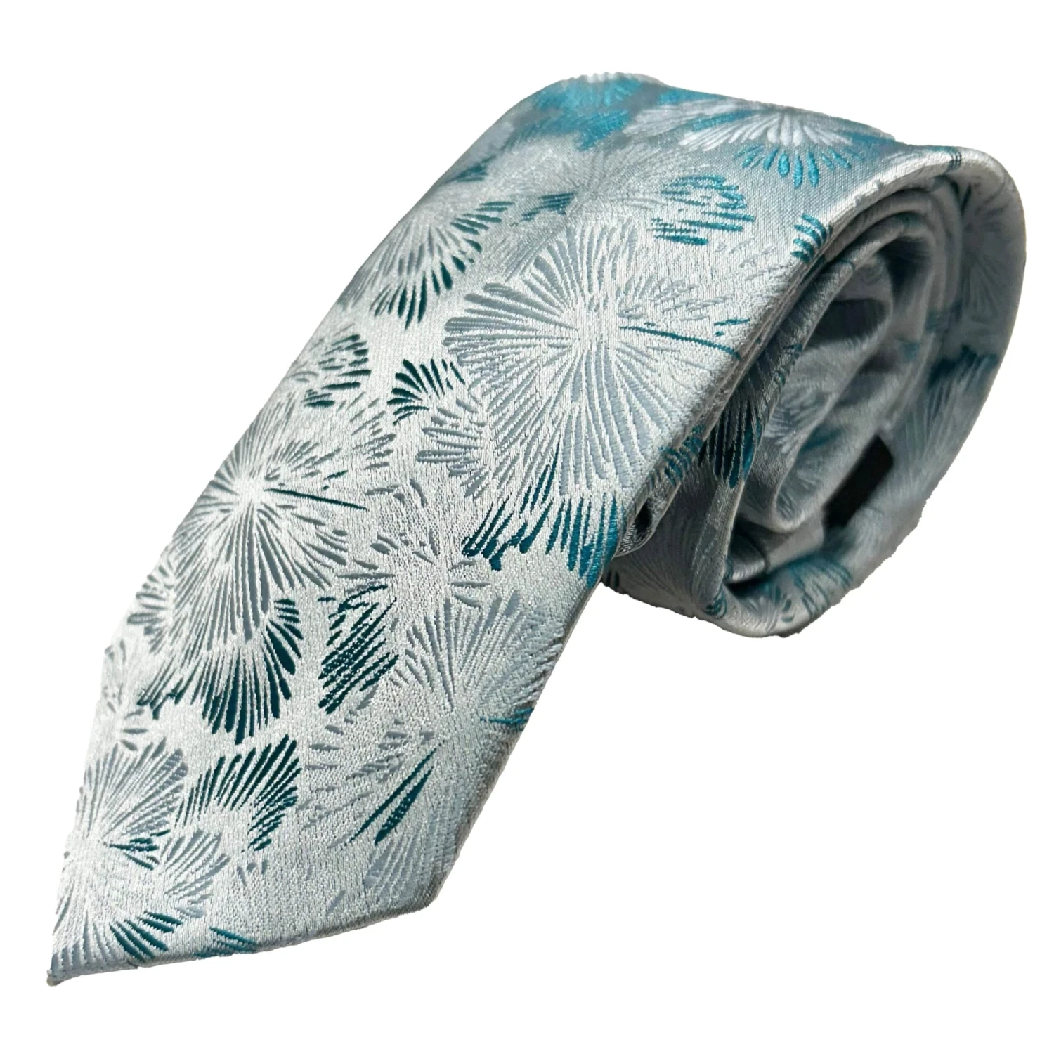 Vichi Mens Tie & Pocket Square Set Floral Turquoise