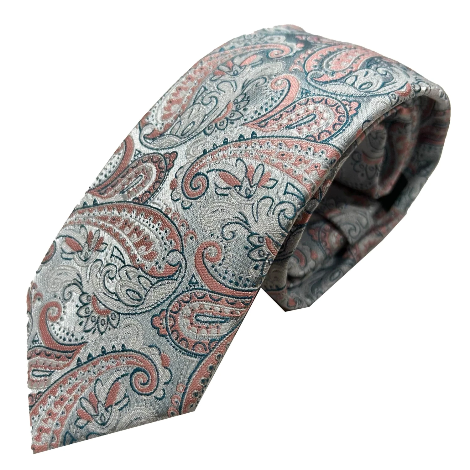 Vichi Mens Tie & Pocket Square Set Paisley Green/Pink