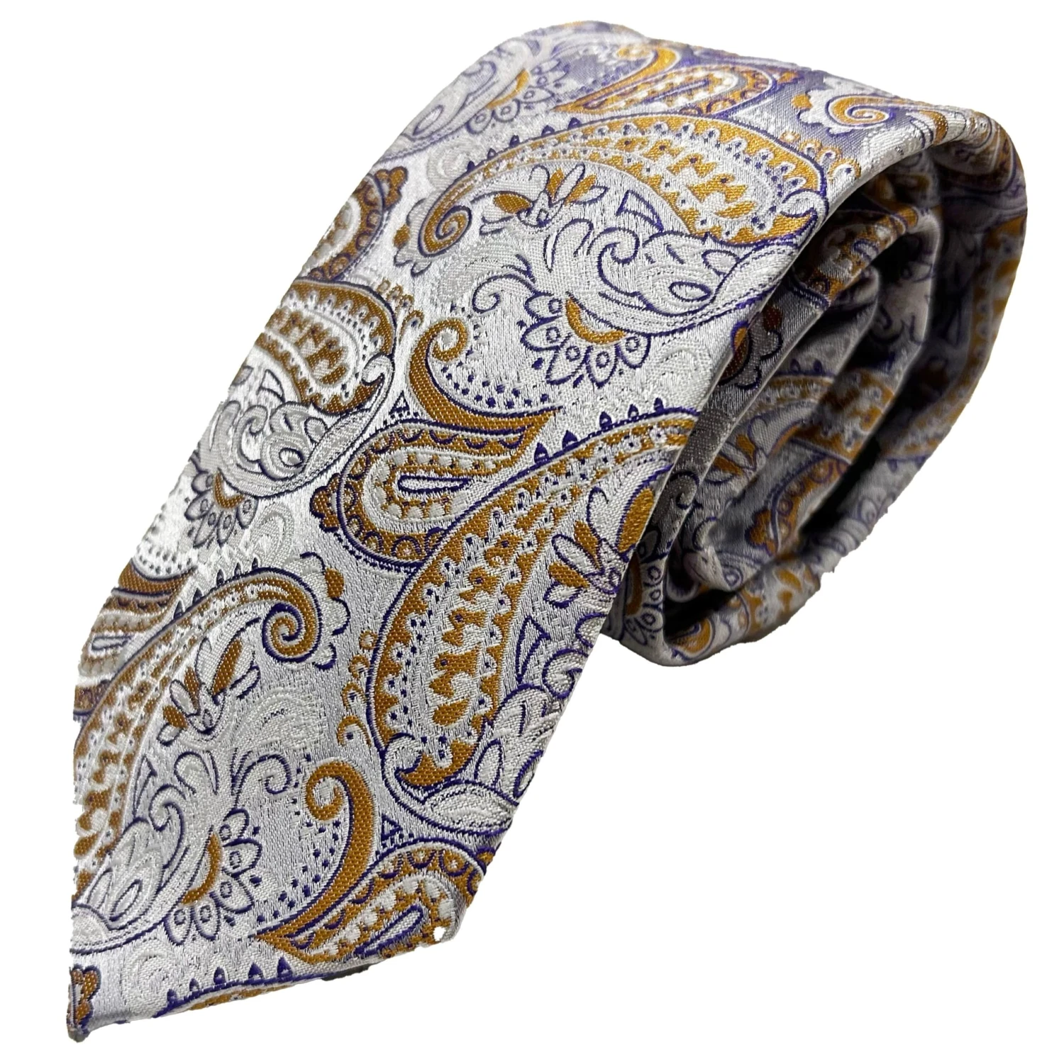 Vichi Mens Tie & Pocket Square Set Paisley Lilac/Gold