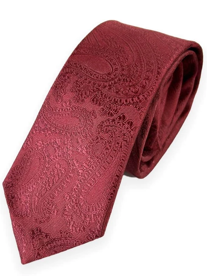 Vichi Mens Tie & Pocket Square Set Paisley Print Red