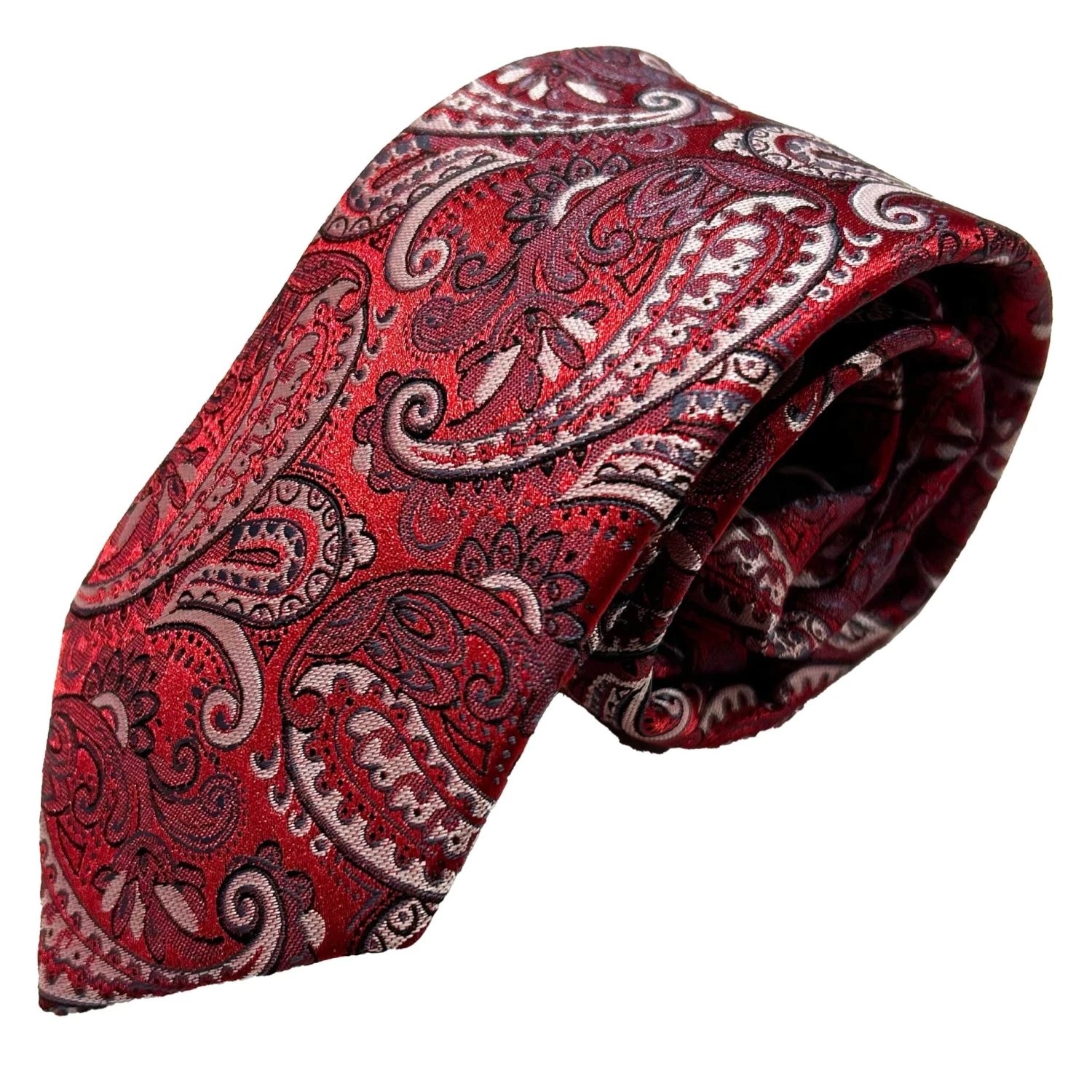Vichi Mens Tie & Pocket Square Set Paisley Red