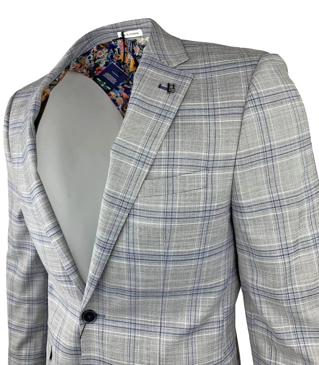 White Label Mens Jacket Tapered Fit Grey/Navy POW Check
