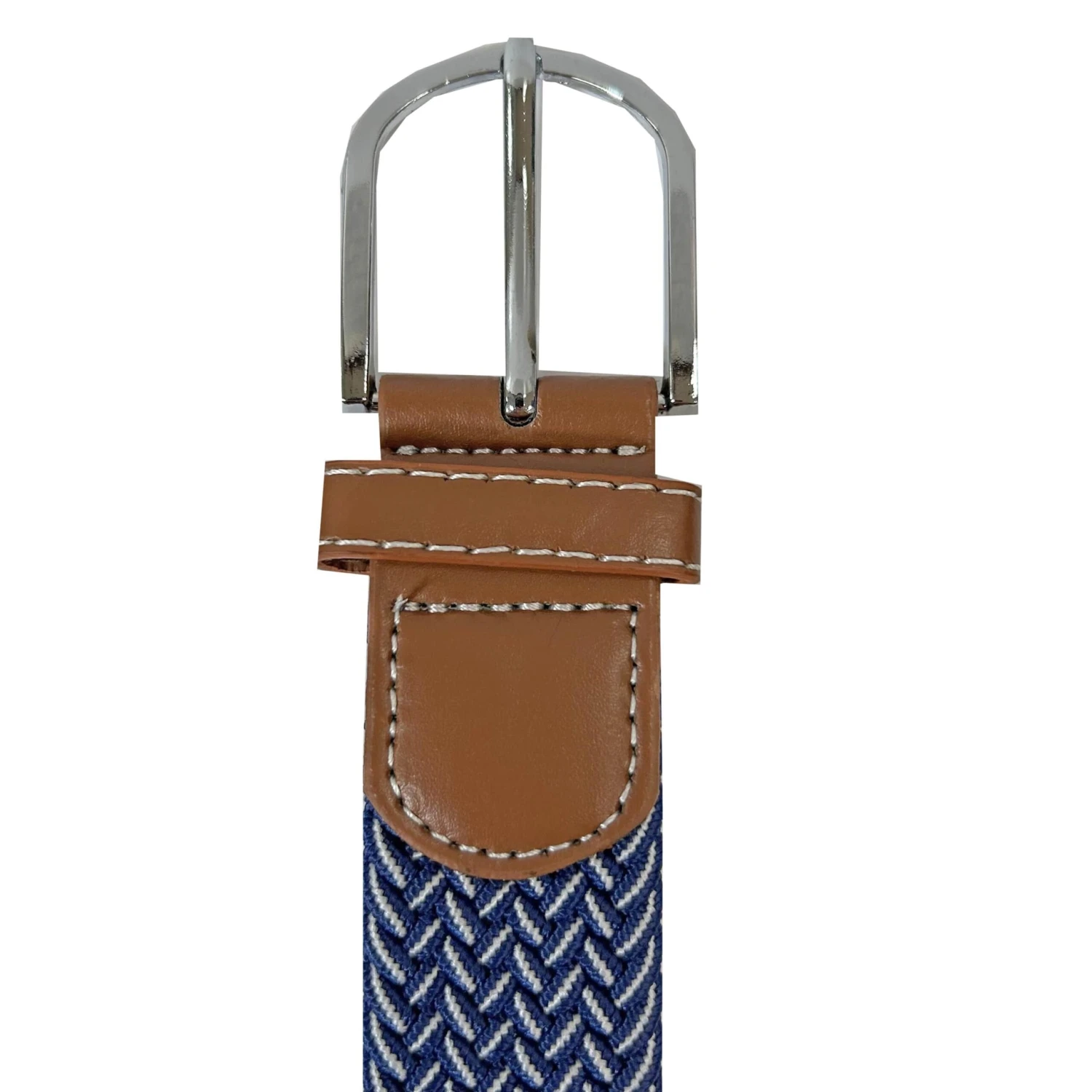White Label Mens Webbing Elastic Stretch Belt Navy/Grey