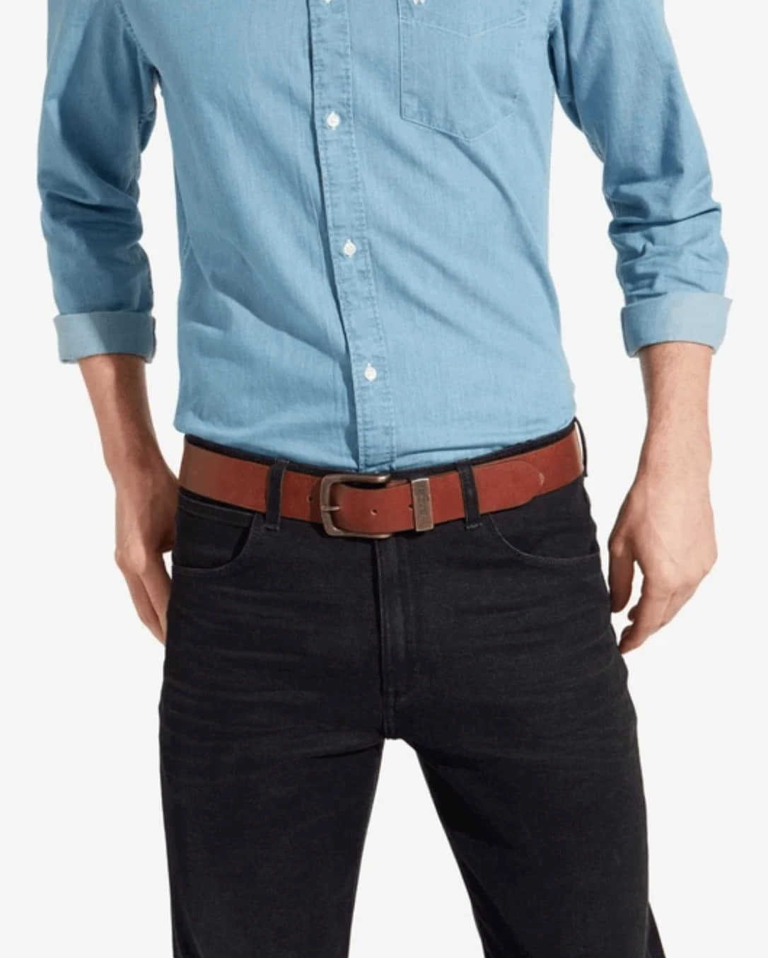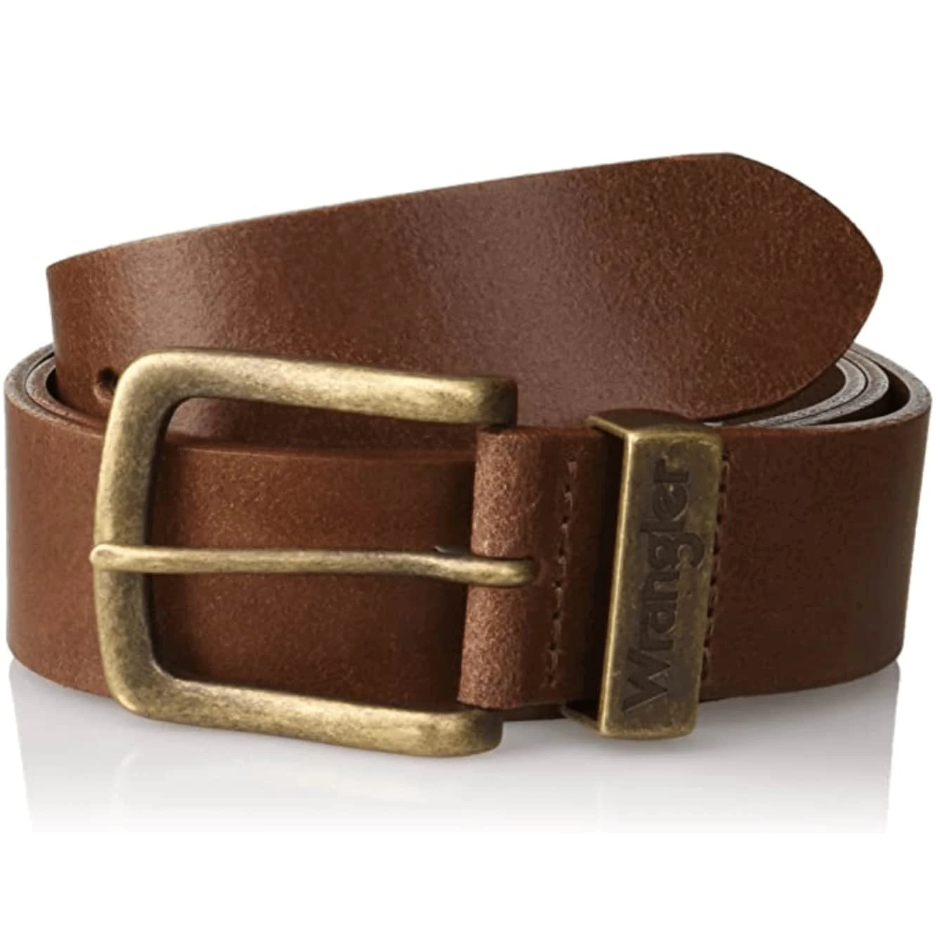 Wrangler Men’s Belt Metal Loop Leather Belt Cognac